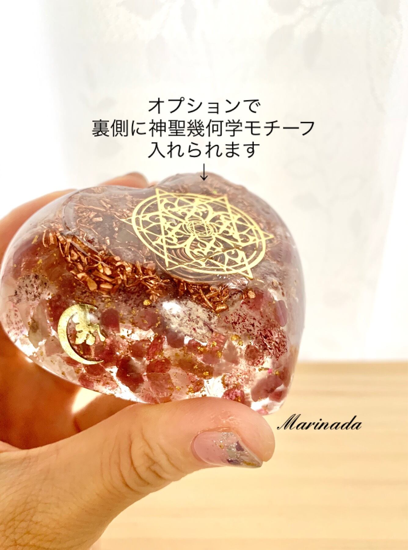 裏面に神聖幾何学を入れられます(+500円)※写真参照