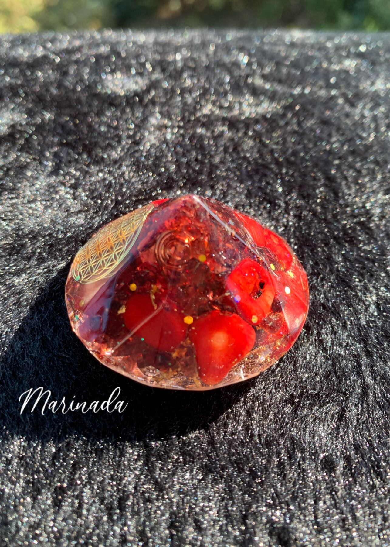 第1チャクラをテーマにお作りしたオルゴナイトです。