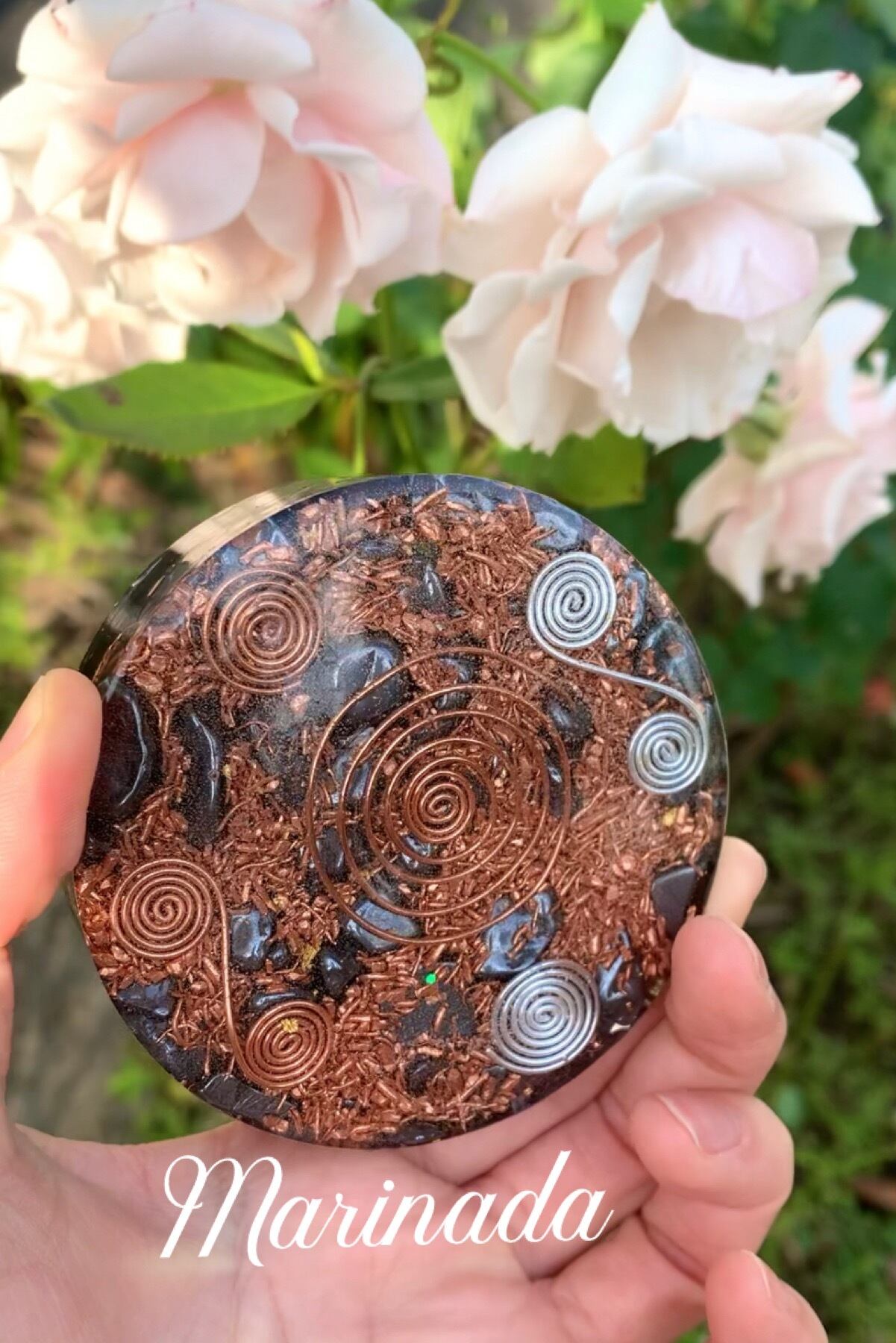 発信力と破邪の力も強いブラックトルマリンと、癒しの鉱石テラヘルツをたっぷりお入れした密度ぎっしりのオルゴナイトです✨