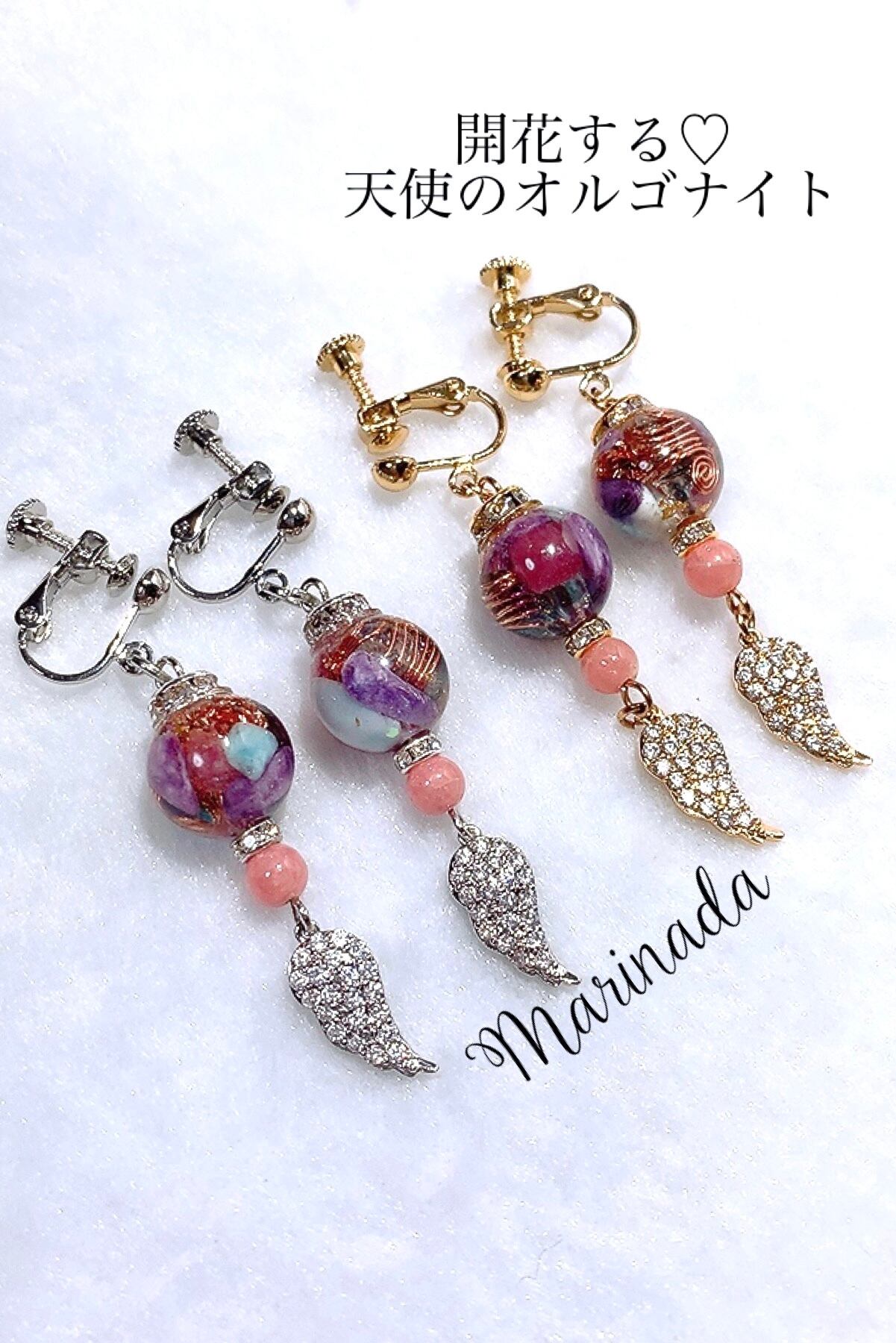 再販しました 開花する♡天使のオルゴナイトピアス(イヤリング可)