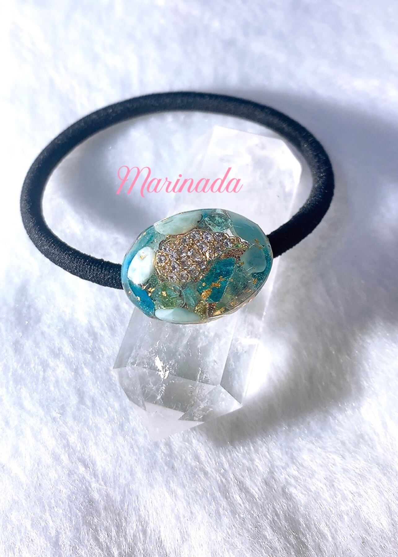 人気のラリマー♡小さめで可愛いオルゴナイトのヘアゴムです。