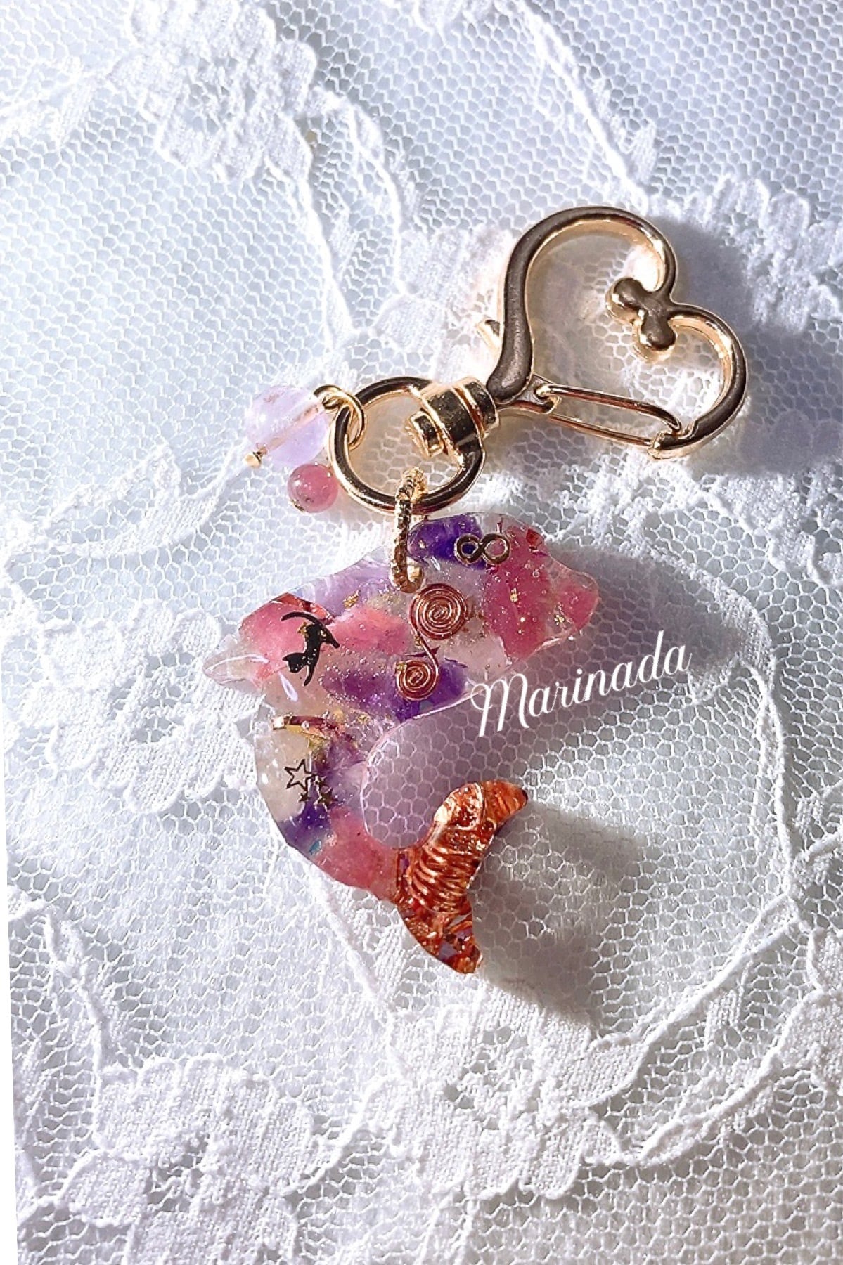 マリナダのオルゴナイトはどの作品にも、贅沢に天然石をぎっしりお入れしてお作りするのですが、こちらのオルゴナイトもたっぷりの天然石を使用し、着色も一切しておりません。