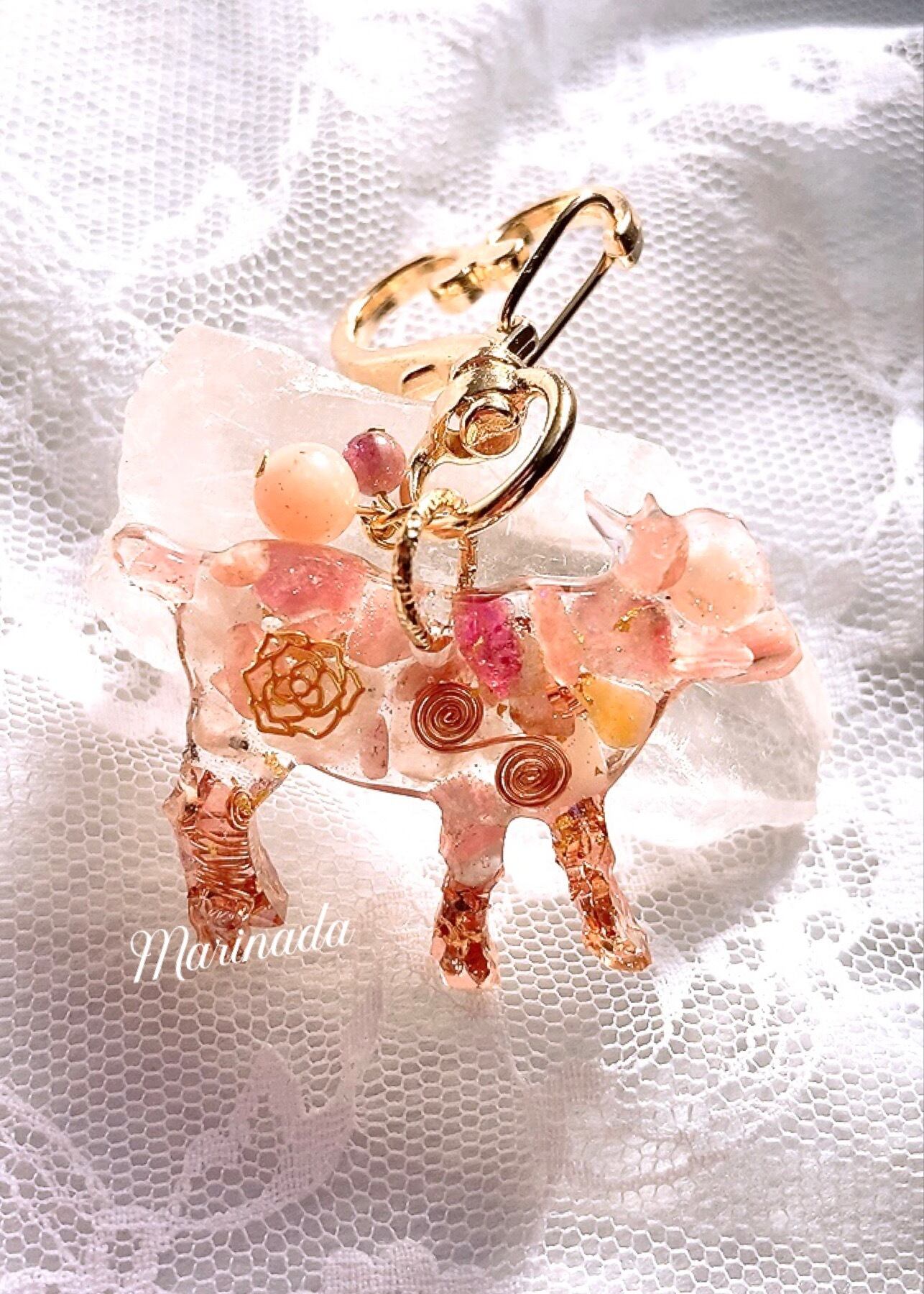 恋するミニヤギさんのオルゴナイト ピンクオパール&ピンクトルマリン&ローズクォーツ